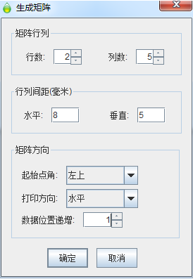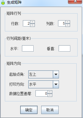 如開篇圖片中顯示的排版格式,要生成的小條碼是2行5列10個小標(biāo)簽。這里就輸入行數(shù)2,列數(shù)5;