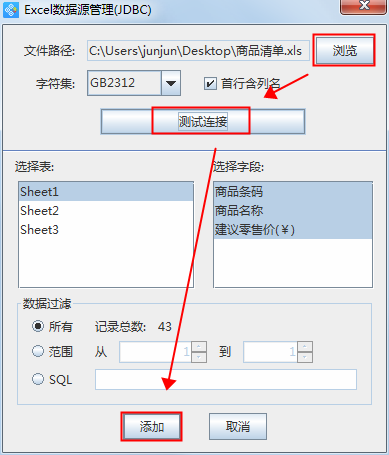 具體關(guān)聯(lián)數(shù)據(jù)庫(kù)的方法就是在中瑯條碼標(biāo)簽打印軟件中,點(diǎn)擊上方菜單欄中的“數(shù)據(jù)庫(kù)設(shè)置”按鈕,在彈出的對(duì)話框中選擇合適的數(shù)據(jù)庫(kù)類型,選擇之后再?gòu)棾龅摹皵?shù)據(jù)源管理”窗口中,找到數(shù)據(jù)庫(kù)所在的文件路徑,添加之后點(diǎn)擊測(cè)試連接,待出現(xiàn)數(shù)據(jù)庫(kù)中的列表后,表示數(shù)據(jù)庫(kù)添加成功。